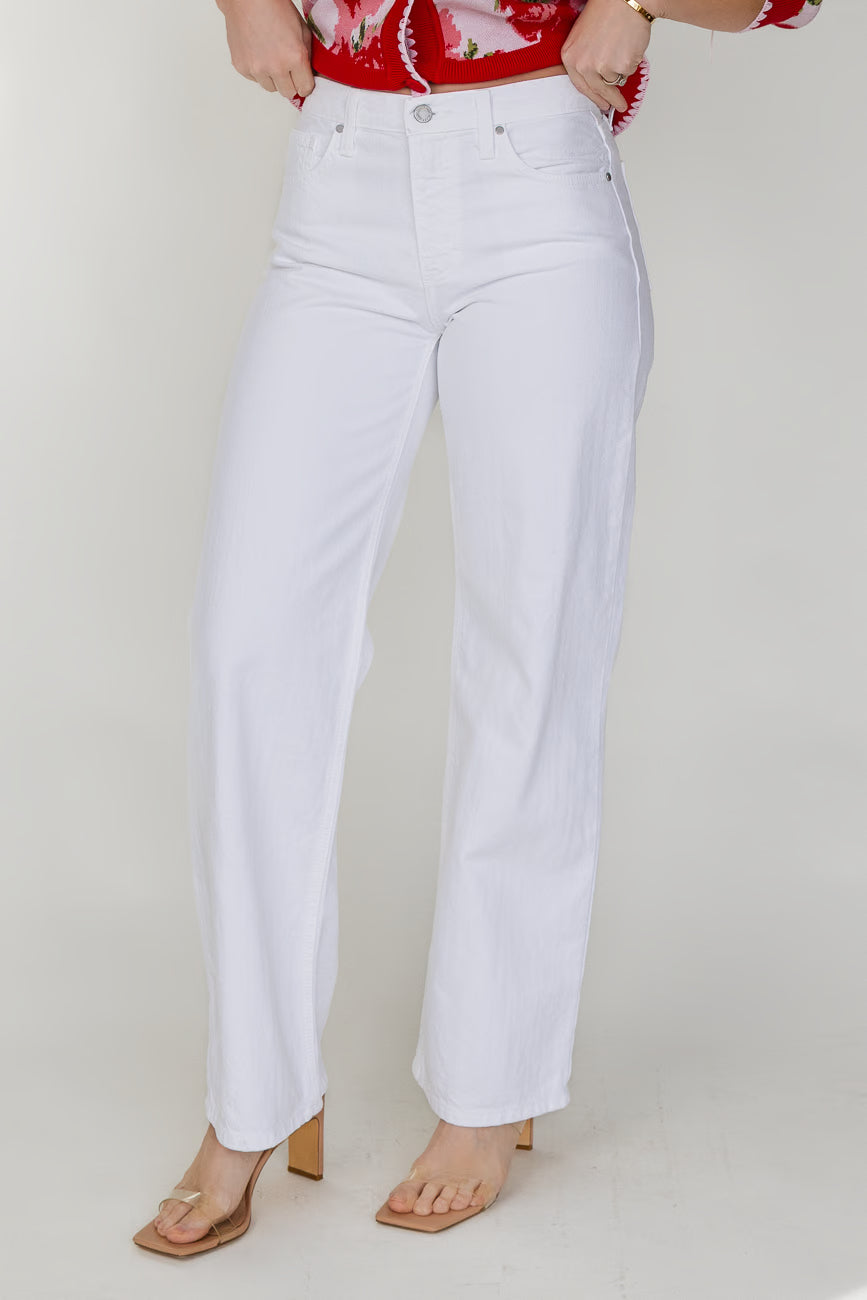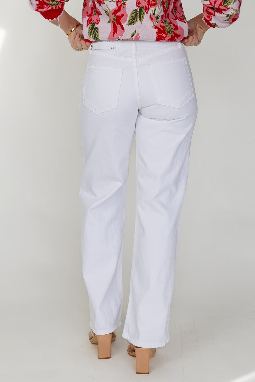 This is the white jean that always works. It has a clean, straight shape with a worn-in feel that makes outfits look intentional without trying too hard. Easy to wear, easy to repeat.