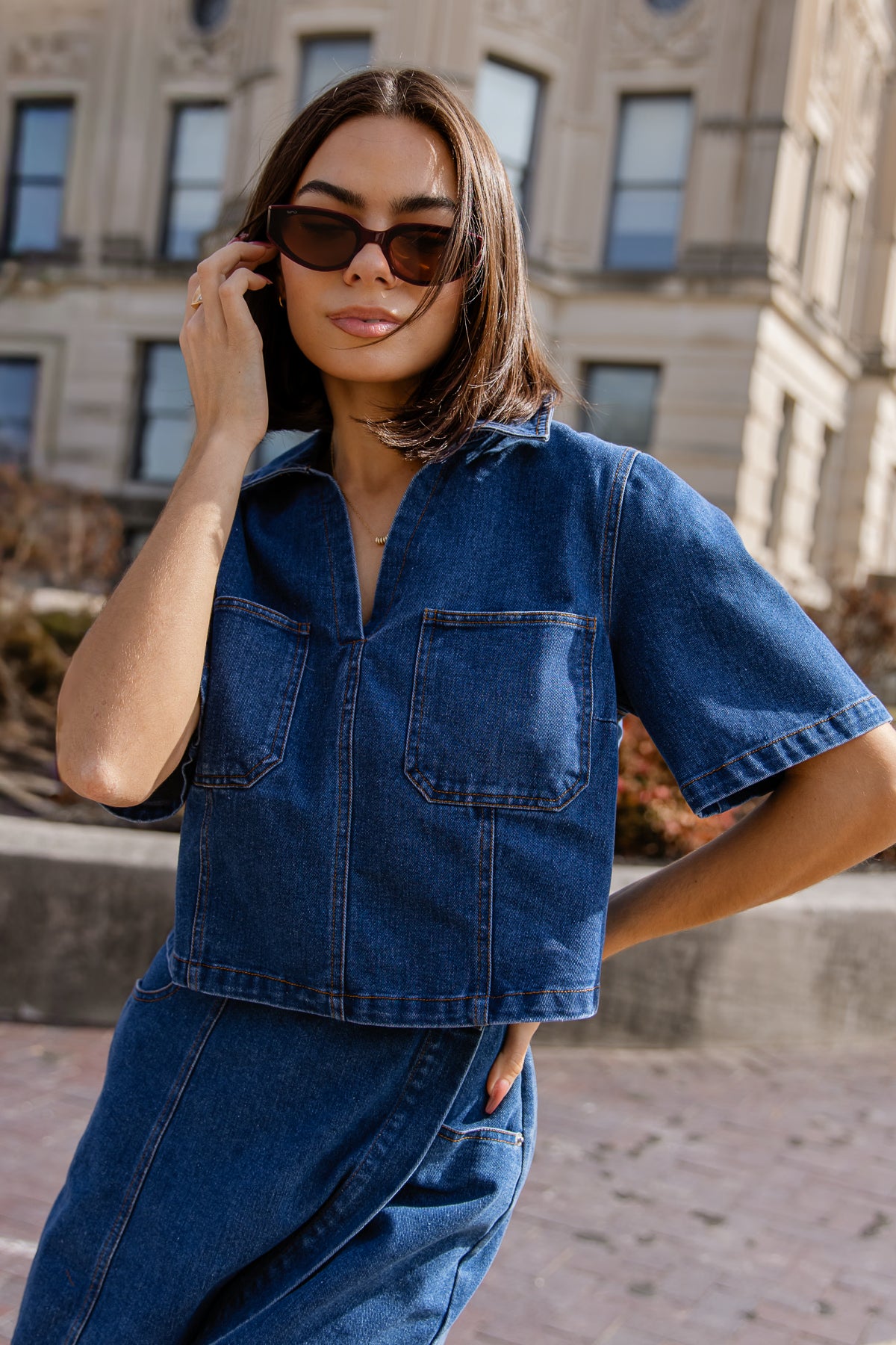 Structured, easy, and made to style on repeat. The Benton Denim Top brings a modern, boxy silhouette to classic lightweight denim.