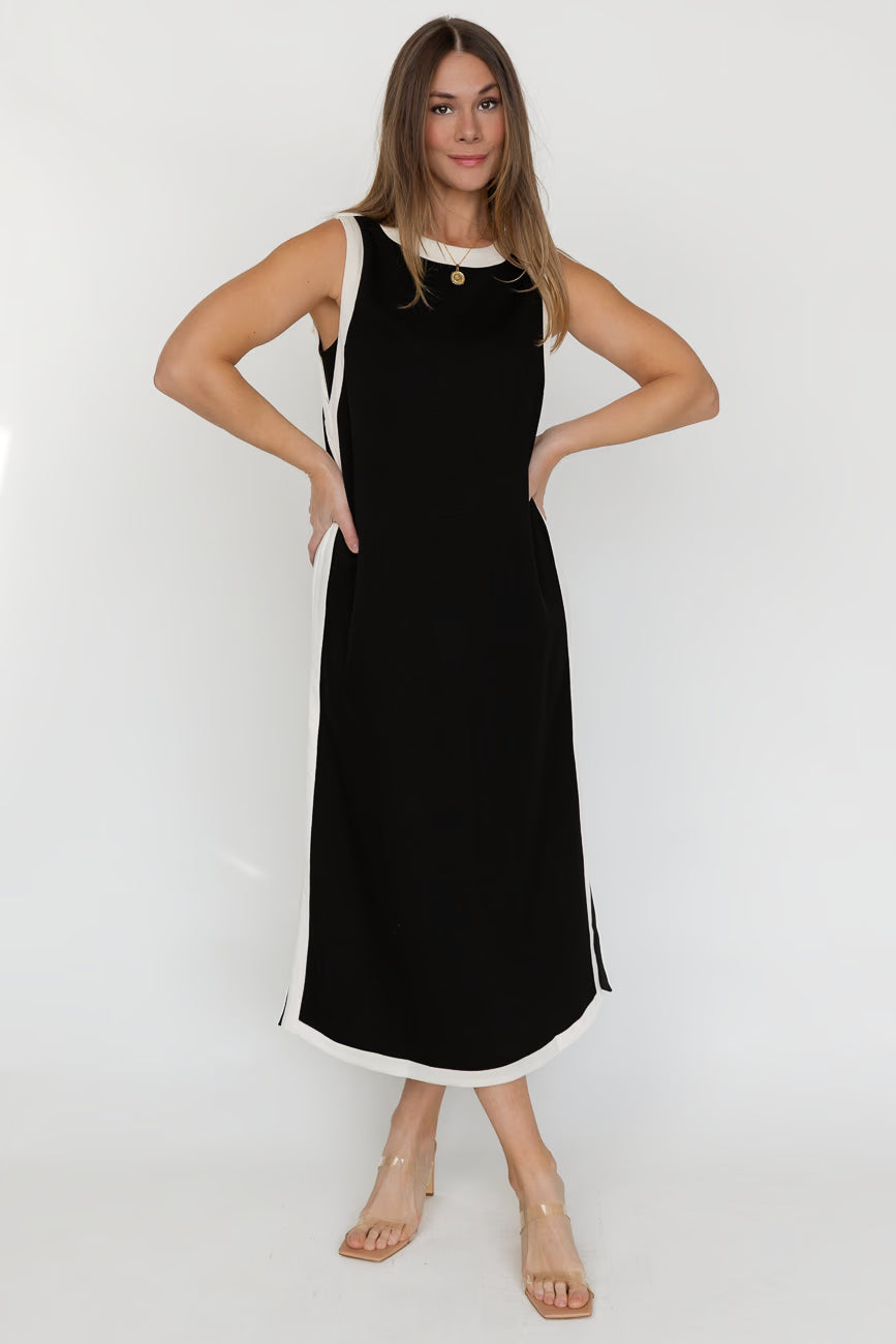 Sloane Midi Dress — Black/Ivory